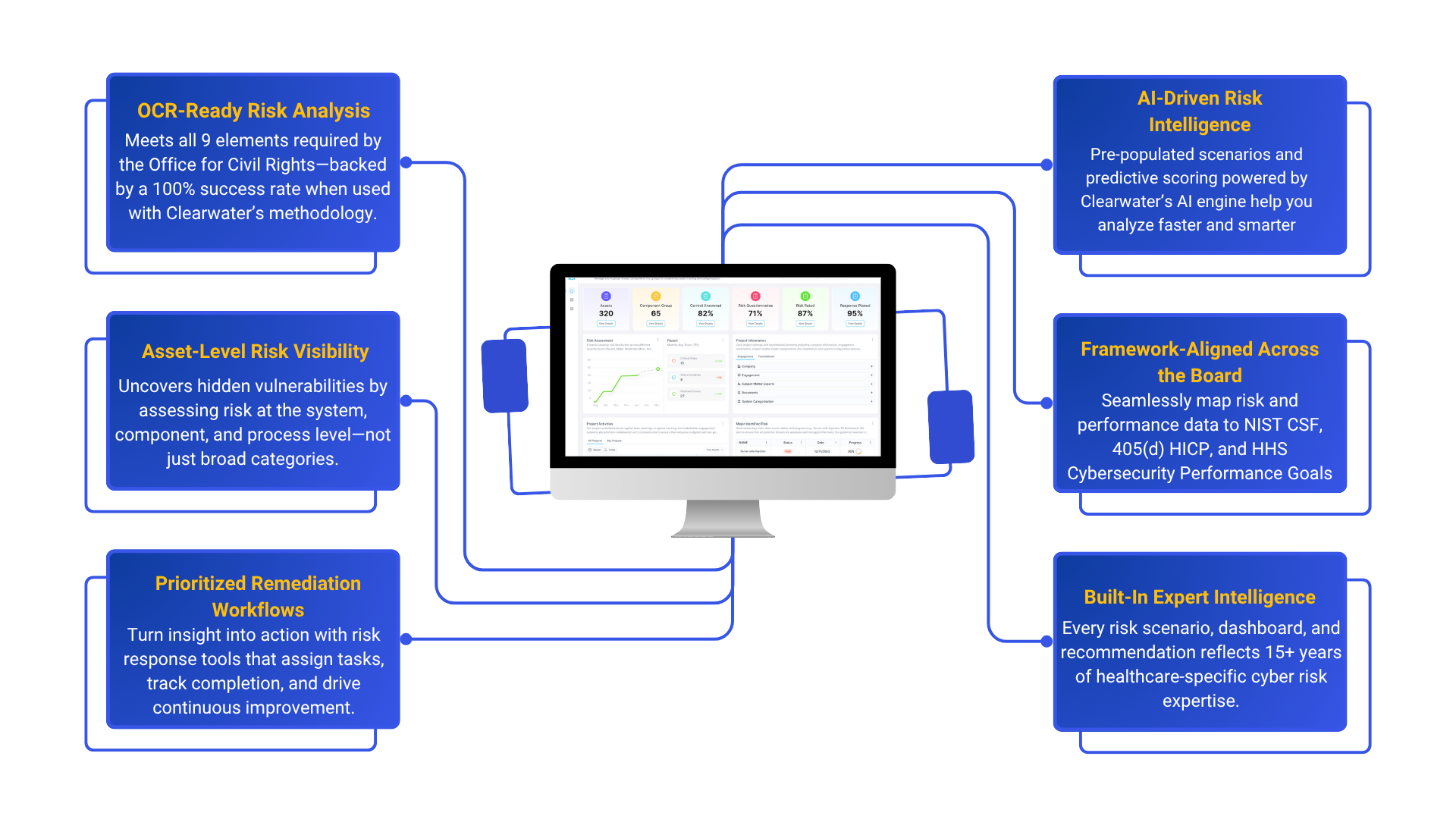 The outcome from our compliance platform is that you know exactly how you would perform against OCR protocols and can easily identify gaps. The benefit of Clearwater is that we offer additional services, programs, and expertise to help you where you need it most, to achieve your goals.