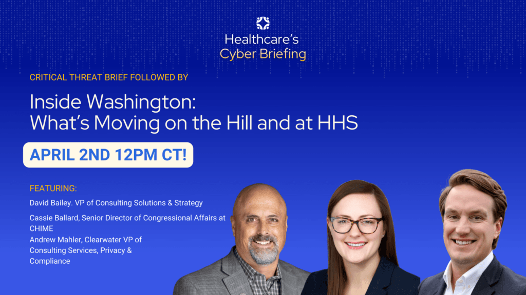 Their conversation follows Clearwater VP Dave Bailey’s review of the latest threat activity and regulatory developments shaping healthcare security programs.
